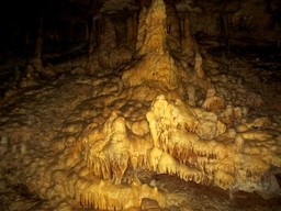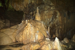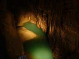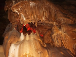 сталагнатовых образований, над которыми природа трудилась миллионы лет. Здесь, например, есть и застывшие волны известняка, и каменная медуза, и пещерный водопад, и огромный падающий валун.