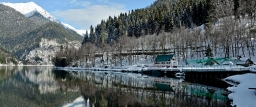 Озеро Рица не замерзает зимой. Застывшая гладь озера Рица отражает окружающие горы покрытые множеством высоких сосен, припудренных пушистым снегом. Солнце, искрящийся снег, чернеющая гладь озера создает неповторимое чувство восторга.