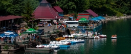 Территория озера Рица достаточно благоустроена. По берегу озера было построено много кафе, сувенирных магазинов, мест отдыха и т.д. Здесь можно покушать самый вкусный шашлык во всей Абхазии.