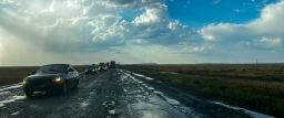 Состояние дороги в Казахстане от российской границы просто «аховое». Дорога на расстоянии 150 километров от российской границы в ужасном состоянии, похожа на разрушенную после бомбардировки. Однако, можно проехать, главное быть внимательным и осторожным.
