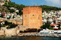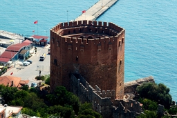 Башня также известна как Аланья Калеси и возвышается на холме с видом на город, откуда открывается захватывающий вид на окружающее побережье. Башня имеет восьмигранную форму и имеет высоту 33 метра. Он был построен из красного камня, откуда и получил свое название. Красная башня является прекрасным примером военной архитектуры сельджуков и свидетельством мощи и силы турок-сельджуков того времени.
