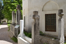 Также здесь находится ротонда с могилой Менгли II Герея. Вдоль садовых тропинок и внутри мавзолеев установлены мраморные и известняковые надгробия, выполненные в едином стиле: каменный саркофаг с двумя вертикальными стелами по краям. Стелы украшены резными изображениями головных уборов (чалма для мужчин, фес для женщин) и эпитафиями, которые варьируются от кратких молитв до философских поэм.