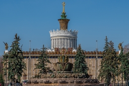 4. Фонтан «Дружба народов» — знаменитый фонтан, расположенный на территории ВДНХ. Он символизирует единство народов Советского Союза и был создан в 1954 году архитекторами И.М. Чайковым и З.С. Новиковым. Фонтан был изготовлен из бронзы и покрыт сусальным золотом, что придаёт ему особую красоту и роскошь.