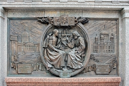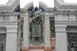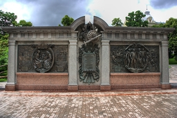 На барельефах представлены разные исторические периоды и герои. Там можно увидеть изображения великих князей, генералов, маршалов и других выдающихся полководцев. Среди них такие известные люди как Александр Невский, Дмитрий Донской, Михаил Илларионович Кутузов, Фёдор Ушаков, Александр Васильевич Суворов, Михаил Богданович Барклай-де-Толли, Михаил Васильевич Скопин-Шуйский, Пётр Александрович Румянцев-Задунайский, Борис Петрович Шереметьев, Михаил Игнатьевич Кутузов.