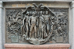 6. Михаил И. Кутузов, Фёдор И. Ушаков, Барклай де Толли, император Александр I и Пётр И. Багратион составляют единый ансамбль. Поочерёдно возвышаясь над колоннадой, фигуры образуют собой величественную композицию, символизирующую единство и силу русского народа. Отдельные личности в этом ансамбле группируются вокруг символической фигуры, обозначающей Родину-Мать.