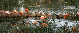 * Птицы: пингвины Гумбольдта, розовые и красные фламинго, аисты, американские и даурские журавли, венценосные и солнечные цапли, кинги, кафрские рогатые вороны, павлины, грифы, грифовые цесарки, красноклювые скворцы и многие другие виды.