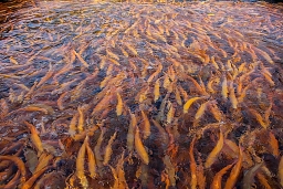 В районе 14 часов по трансляции WEB-камеры можно наблюдать процесс кормления форели. Потрясающее зрелище.