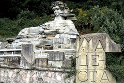 . Расположен памятник на углу Курортного проспекта и аллеи Чалтенхема, перед Мацестинским мостом. Скульптура выполнена из песчаника. Стилизованная надпись "Ма-це-ста" на передней стене служит своеобразным дорожным указателем, обозначающим поворот на Мацесту к Мацестинскому курорту. Авторами был предусмотрен фонтан в виде каскада воды, истекающего из-под правой руки девушки. По одной из легенд, чтобы помочь безнадежно больным родителям, девушка проникла в пещеру, убила охранявшего целебный источник Духа горы и вывела источник на поверхность. Запах конечно на всей территории Мацесты очень специфический. Многих туристов это останавливает от посещения Мацесты с туристическими целями.