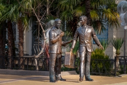 ) стоят рядом со скульптурной группой «Семья Семена Семеновича Горбункова», изображающей сцену проводов скромного старшего экономиста Гипрорыбы в заграничный круиз. На изготовление обеих композиций ушло около двух тонн бронзы. Авторы памятника – сочинские скульпторы Вячеслав Звонов и Александр Бутаев.