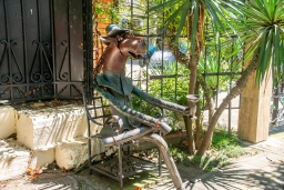 , который сделал скульптуру из обычного металлолома, сумел передать настроение данного героя. Весь его вид так и говорит: «Жизнь удалась!»