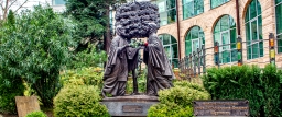 Возле сочинского загса установлен памятник святым Петру и Февронии, символизирующим в русской православной традиции любовь и семейную верность.
