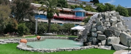 Так же есть большая песчаная зона для пляжного воллейбола и зона с шезлонгами.